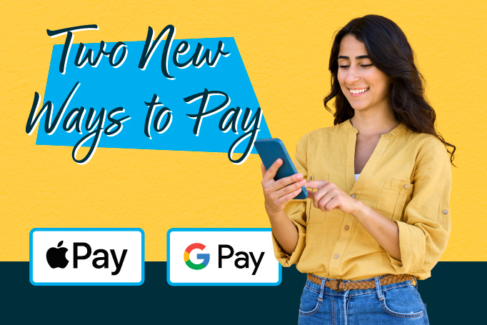 We are excited to announce two new payment options designed to give you more flexibility and convenience: Apple Pay and Google Pay. These new payment options add to the many convenient ways to pay your bill. Whether you are at home or on the go, managing your account is simpler than ever!